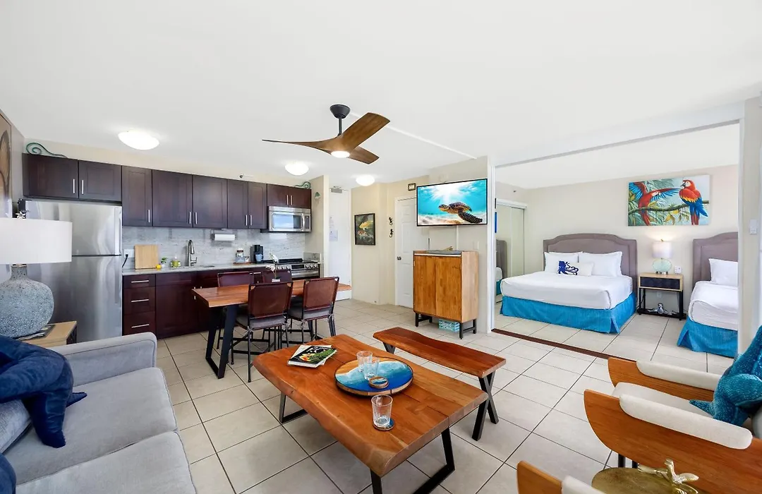 This apartment is equipped with self-catering facilities, including a kitchen with coffee and tea making equipment, a refrigerator, and an oven. The accommodation also provides guests with tea and coffee making equipment. Queen Kapiolani Hotel Restaurant offers American dishes and lies approximately a 5-minute walk away. The nearest airport is Honolulu, 20 km from this property, and Trolley bus station is approximately a 10-minute walk away. Guests will have an enhanced experience at the apartment by being provided with opportunities for diving, hiking and horseback riding.